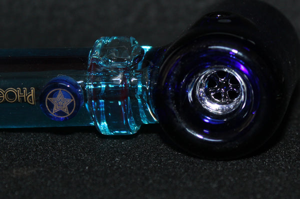 This ad is for (1) 4 1/2" BLUE FREEZE Hammer glass Table pipe with a unique colored stem that can be put in the freezer and frozen before use, this pipe also features a built-in snowflake screen. This is a very unique and attractive hammer style pipe. The pipe is very stable sitting on a flat surface due to its extended shoe base. The styling of the pipe is sleek and the glass is smooth and glossy.