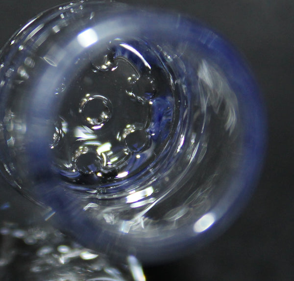 This pipe is about 4" long and about 5/8" in outside diameter at the bowl area. The tobacco bowl itself is about 1/2" in diameter x about 5/8" deep and is bucket shaped with a flat bottom with a built-in honeycomb glass screen at the bottom. The stem is about 5/8" in diameter by the bowl area and then tapers to about 3/8" near the mouth piece. The pipe free stands on it's resting feet and is about 1 1/2" tall off the flat surface at the bowl end.