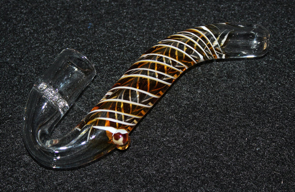 This ad is for 1 (ONE) 4" GOLDEN WAVE - MINI SHERLOCK glass smoking pipe. This pipe is very well made from thick borosilicate glass and features 2 small glass resting feet, and an inside accent ribbon. This pipe will free stand on its resting feet and the end of its stem.
