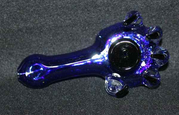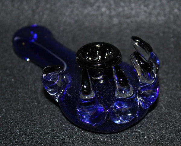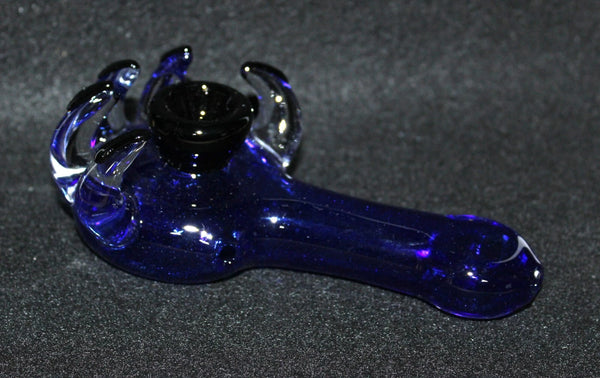 The 5" BLACK CLAW glass smoking pipe is a beast of a pipe with 5 clear glass claws, a BLACK frit inside finish, and a black colored tobacco bowl . This pipe features many modern glass art techniques including hot working and surface fritting along with a left side air control hole. This pipe is Grrrr looking, very unique and a good addition to your collection.