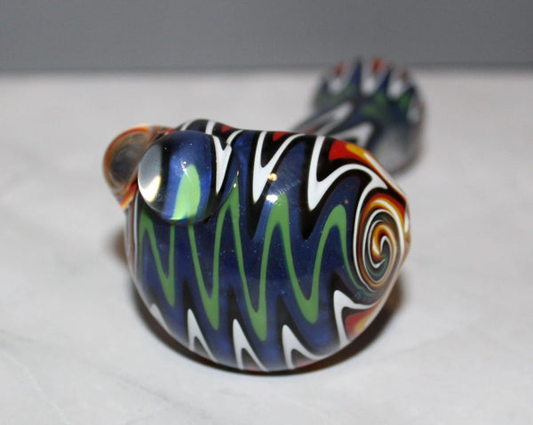 This ad features a 5" MOODSHIFT glass tobacco smoking pipe made from high quality borosilicate glass. This piece features a smooth glass finish, 3 stabilizing beads and a left side air control hole. The unique swirl coloring and design is sure to be a hit!