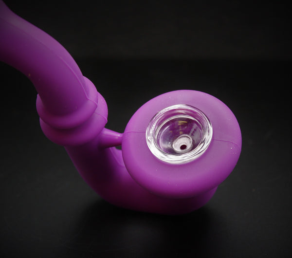 This ad features a 5" PURPLE SILICONE SHERLOCK Pipe with a removable glass tobacco bowl. This pipe sports a cool molded-in finish, an UNBREAKABLE silicone body and a removable glass bowl for easy cleaning. This pipe is great for outdoor activities as it won't break, is a great joy to smoke and a good addition to your collection.