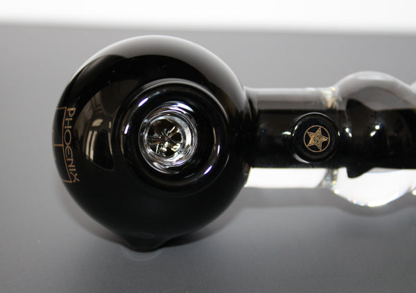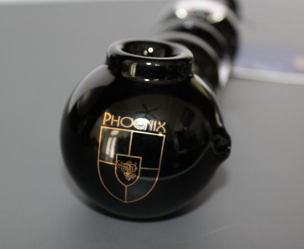 The pipe is about 7 1/2" long with a head end that is a spherical shape of about 2" in diameter with an air control hole on the left hand side. The actual tobacco bowl is about 5/8" in diameter x 3/4" deep with a built-in snowflake screen at the bottom. The main internal stem of the pipe is about 5/8" in diameter and continues stright through the pipe. There are 3 external bubble areas around the pipe stem, the first and second are about 1 1/4" in diameter and the last is about 1 3/8" in diameter. The pipe has a flat area on the back of the head end so the pipe will free stand without rolling.